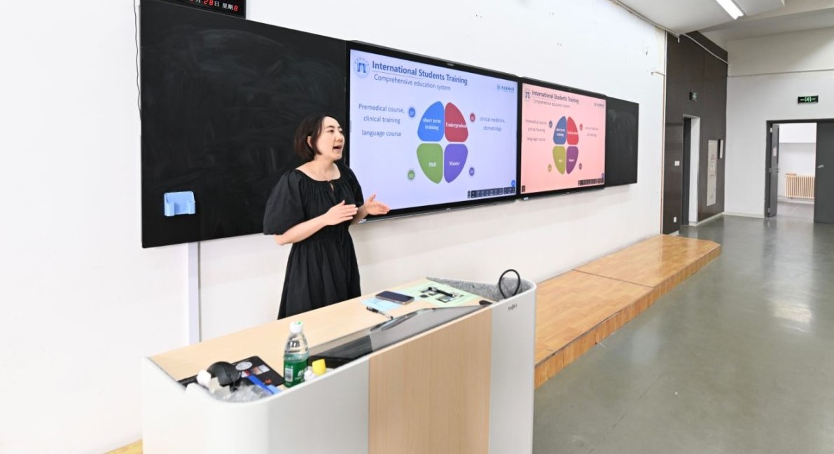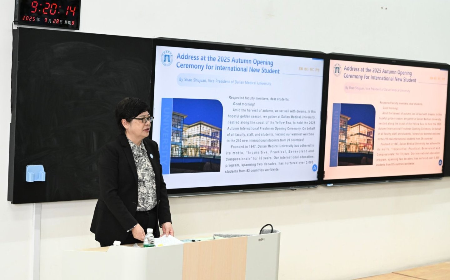 最后,邵淑娟发表讲话。她向新生们介绍了学校在国际化教育和医学人才培养方面的优势与成果,并寄语新生要持之以恒地追求真理,努力成长为兼具精湛医术与国际视野的卓越医学人才。