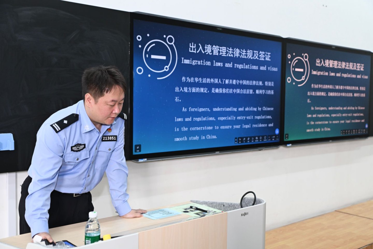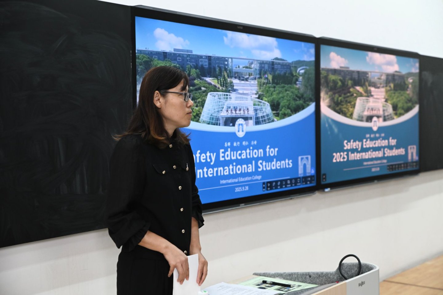 还特别组织了安全教育培训及校规校纪宣讲会。会议特邀大连市出入境管理局、大连市交警支队旅顺口大队的警官,分别就出入境管理法律法规、电信诈骗、交通与人身安全、禁毒宣传以及防火安全教育进行宣讲。郭艳秋则围绕校园安全进行了主题教育。通过真实案例剖析,帮助学生们明晰在华学习应遵守的法律法规,了解交通安全注意事项,增强识毒、防毒、拒毒意识,提升消防安全能力,有效提升他们在日常生活中的安全防范能力,为校园生活与出行安全筑牢坚实屏障。随后,啪啪啦