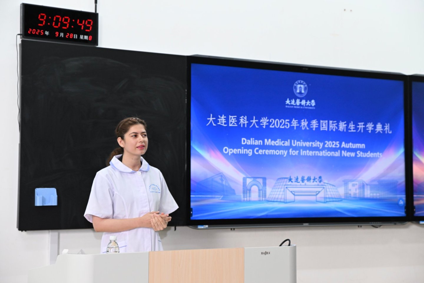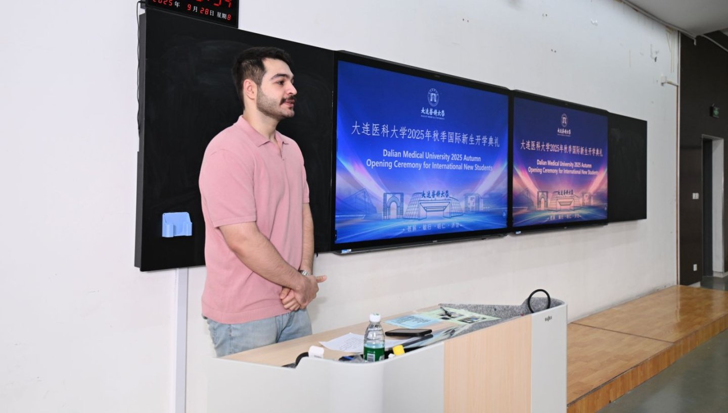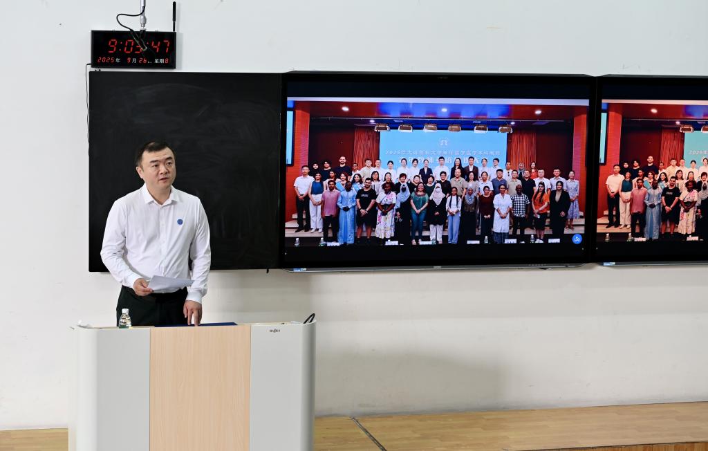 随后,在校留学生代表、2022级临床医学专业本科生普尔同学分享了自己在校学习与生活的宝贵经验,为学弟学妹们提供了有益的借鉴。新生代表、2025级外科学博士那米同学在发言中表达了对于学业的憧憬与决心,并代表全体新生承诺将恪守校规,勤奋求学。