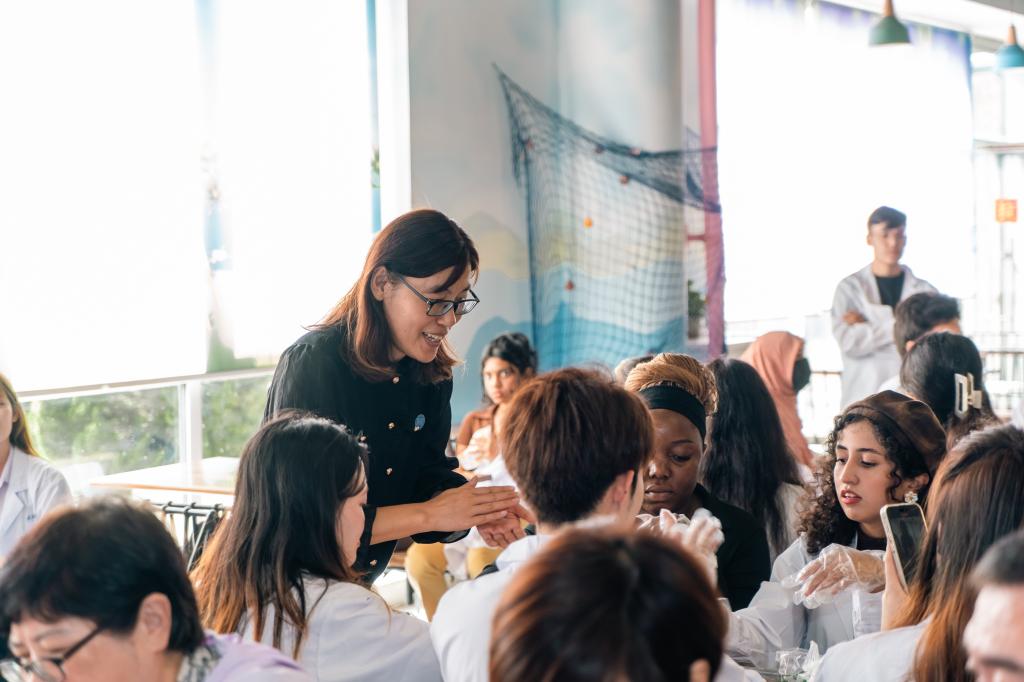 节目表演结束后,活动进入温馨的茶话会环节。现场摆放了各色月饼、新鲜水果等节令食品,师生围坐在一起,一边品尝美食,一边畅谈生活与学习中的趣事。大家用中文、英文以及各自的母语交流着对中秋的感受,分享着家乡的节日习俗,在轻松愉快的氛围中,进一步拉近了彼此的距离。活动最后,全体师生共同拍摄“中秋全家福”,镜头定格下一张张灿烂的笑脸,也记录下这场跨越国界的团圆时刻,为此次中秋活动留下了珍贵的回忆。