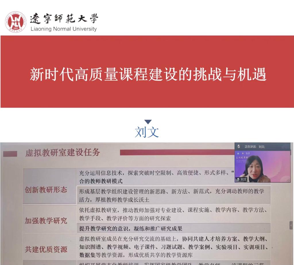 联合教师教学发展中心线上举办虚拟教研室建设师资培训会。学校各虚拟教研室建设项目负责人、研究生导师及一线教师共50余人参会。培训特邀辽宁师范大学刘文教授、超星集团项目负责人孙斌作专题分享与实操指导。